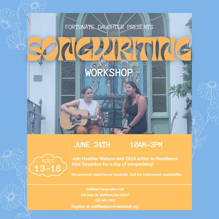 Join Heather Watson and 2024 Artist-in-Residence Alex Sesenton for a day of songwriting! No previous music or writing experience required. Don’t have an instrument? We have a few! Please call for instrument availability.
