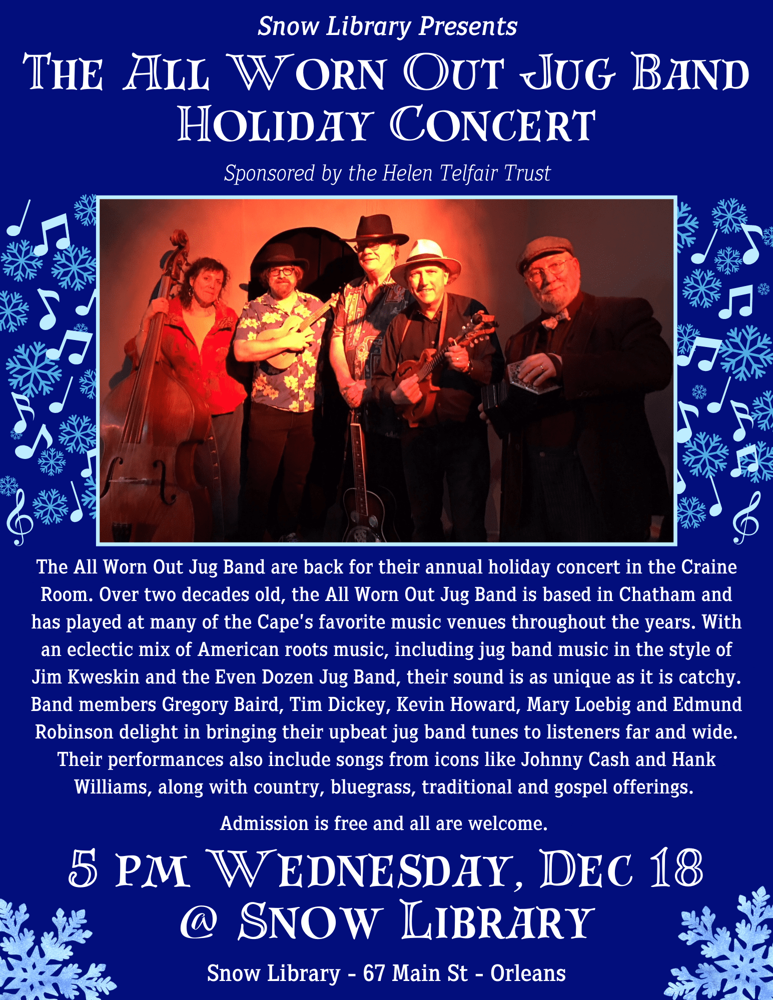 Snow Library Main St. , Orleans, MA, United StatesA reception for Christine Fitzsimmons, whose abstract oil paintings are on display in the Craine Gallery through December, will be held in the Craine Room of Snow Library. All are welcome. Christine’s exhibit, "What Is It? An Exploration of Abstract …