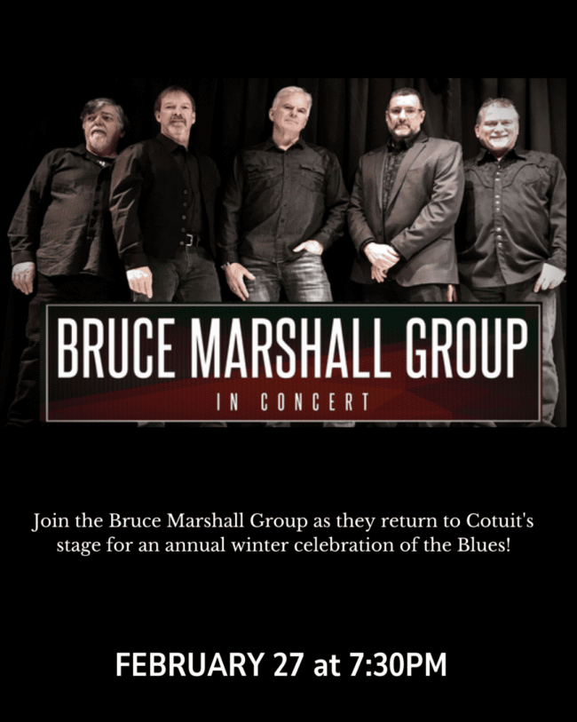 Cotuit Center for the Arts is thrilled to welcome back the Bruce Marshall Group for an unforgettable evening of blues, rock, and soul. Join us on Friday, February 27 at 7:30 PM, as Bruce Marshall and his talented bandmates bring … |