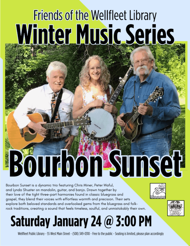 January 24 @ 3:00 pm - 4:00 pm Bourbon Sunset Wellfleet Library 55 W. Main Street, Wellfleet, MA, United States